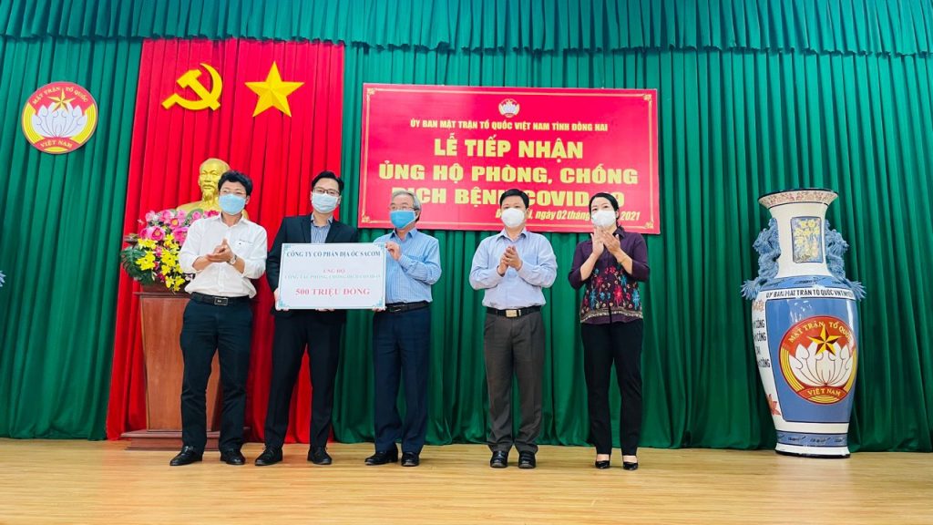 Recently, the COVID-19 epidemic has developed in a complex and unpredictable manner in several provinces and cities, causing damage in terms of human life, material resources, and mental well-being, directly affecting the livelihoods and production and business activities of people across the country in general and in Dong Nai province in particular. With a spirit of solidarity and a willingness to share responsibility with the community, Sacom Real Estate Joint Stock Company has actively responded to the call of the Standing Committee of the Vietnam Fatherland Front Committee of Dong Nai Province to contribute financial support for COVID-19 prevention and control. This afternoon, December 2, 2021, representatives of Sacom Real Estate Joint Stock Company handed over 500 million VND to the Vietnam Fatherland Front Committee of Dong Nai Province, contributing to the efforts in fighting the epidemic across the region.